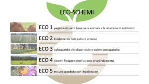 La principale novità riguarda gli ECO-SCHEMI, ovvero pagamenti (facoltativi) connessi alla superfcie e/o capi aziendali, che incentivano gli imprenditori tramite un premio ad assumere impegni in materia ambientale.