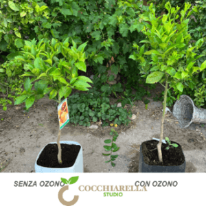 Ulteriore aumento dello sviluppo vegetativo nella pianta irrigata con ozono (foto: arancio)