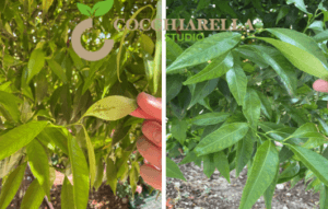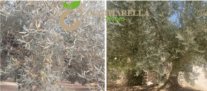 Prima e dopo il trattamento di polverizzazione di acqua ozonizzata per la Cercosporiosi Mycocentrospora cladosporioides (foto: olivo)