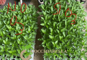 Aumento dell’apparato radicale nelle piante a destra irrigate con acqua ozonizzata (foto: peperoncino)